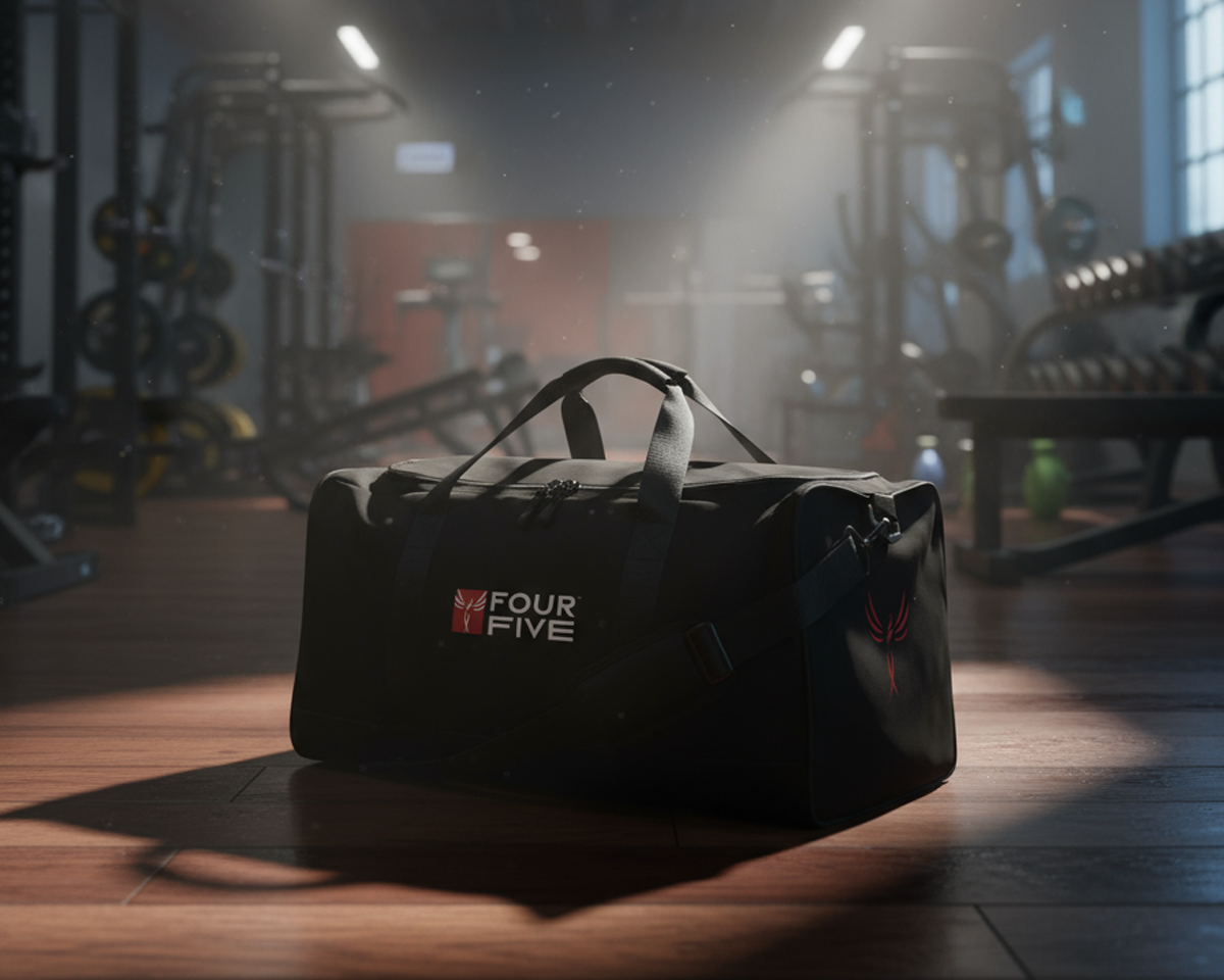 This duffle bag blends function and purpose — whether it’s the gym, travel, or daily grind. Spacious, durable, and marked with the FourFive logo — a reminder that every move counts.
